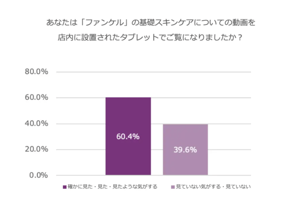 既にブランドの歴史、定常的なTVCMなどの影響で認知度が一定数ある同社ブランドですが、基礎スキンケアに関しては、広告出稿店舗で明確に「知っている」と回答した人が、出稿なしの店舗の約1.7倍で、約60%となりました。「聞いたことがある」と回答した人には、大きな差はありませんでした。